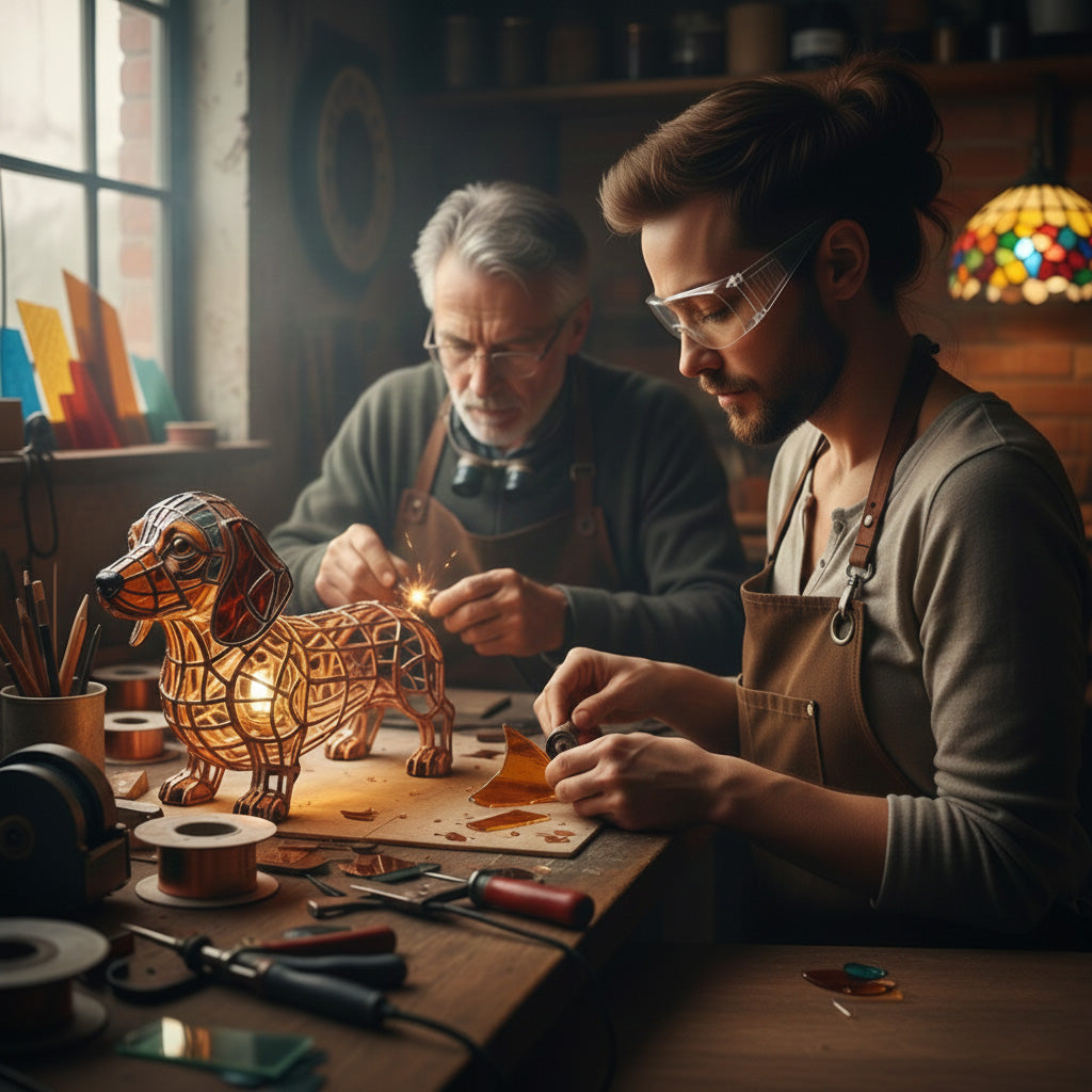 Crafted from fine stained glass and shaped by hand, our lamps bring the character and glow of timeless artistry into your home, no gallery ticket required.